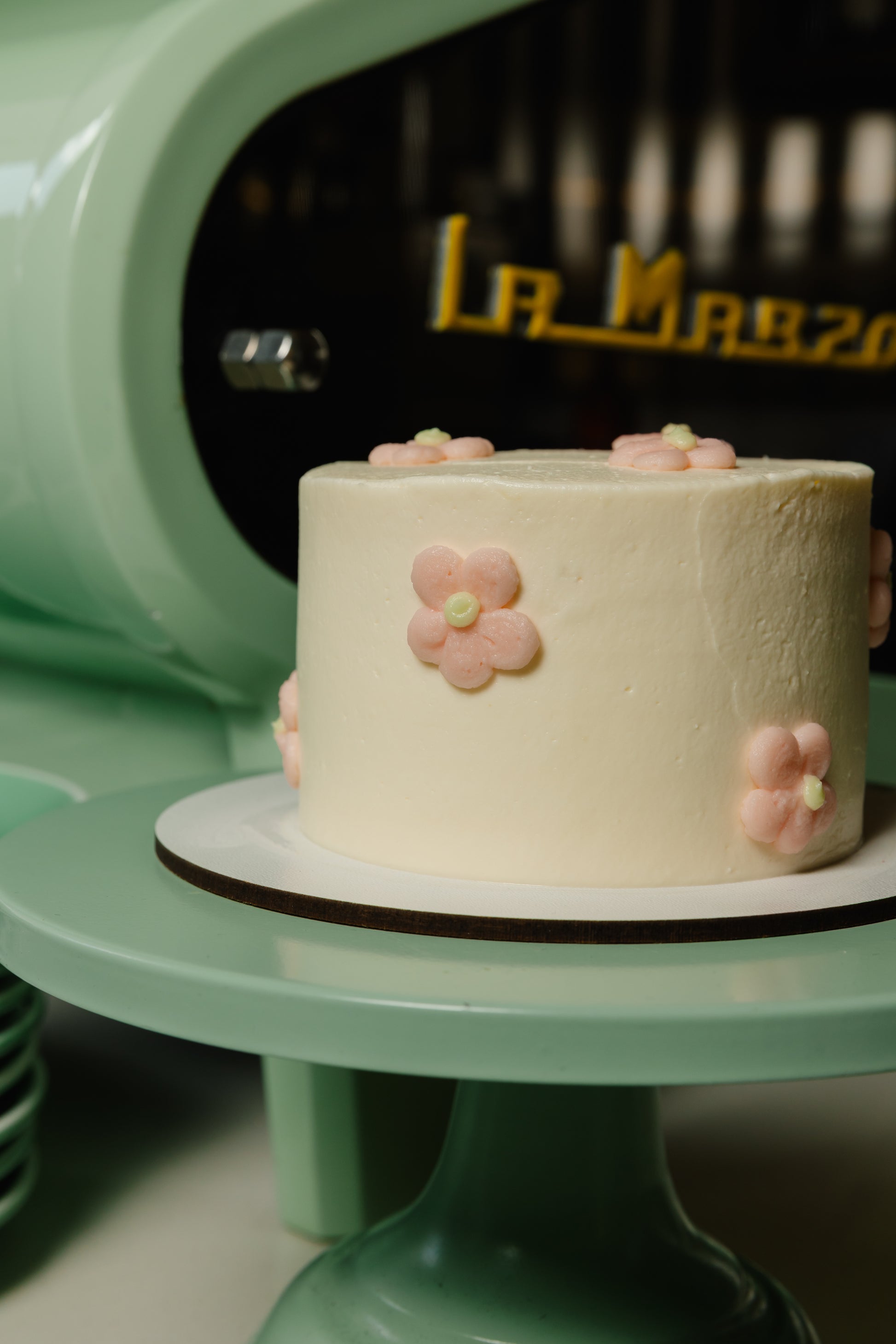 Ванільний шифоновий бісквіт, просочений сиропом з мʼяти та лайму, з полуничним кремом та лаймовим курдом