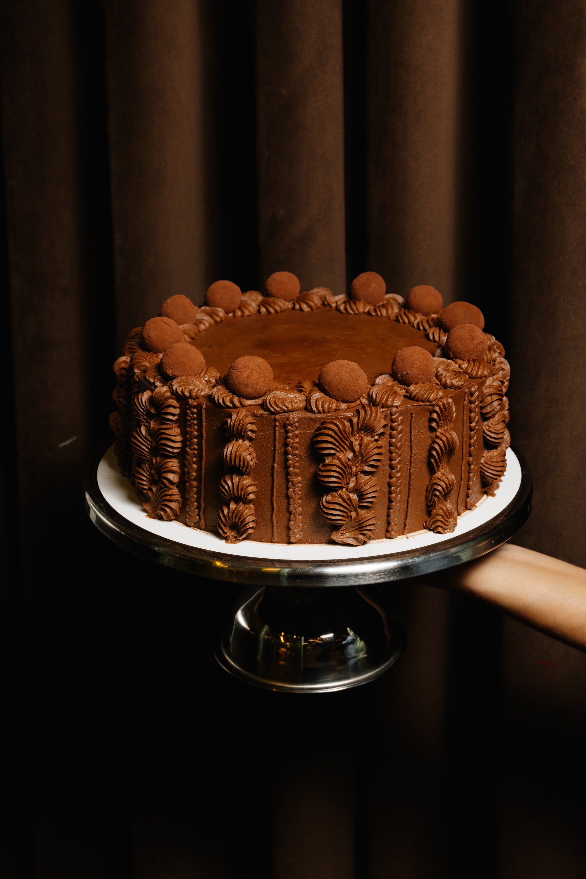 Тонкі коржі з заварного тіста з додаванням меду, заварний шоколадний крем, фундучна карамель, шоколадний крем-чіз та трюфельні цукерки